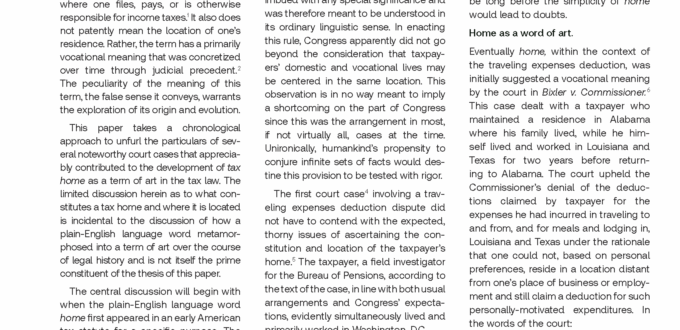 Published in the Journal of Taxation, Thomson Reuters, Vol. 142, No. 10, March/April 2025. Evolution of the Tax Home Concept as a Legal Term of Art Anthony Malik* INTRODUCTION Tax home is, particularly when considered in an international context, a curious legal term with a specific meaning that is at odds with what it superficially […]